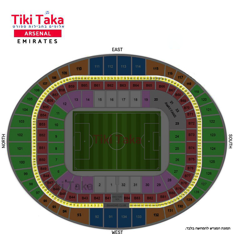 המחיר הוא מחיר הבסיס לכרטיס בקטגוריה הנמוכה ביותר. תוספת תשלום מופיעה בצבע אדום לצד הקטגוריה הנבחרת. התחייבות מצידנו לזוגות צמודים במגרש – ייתכן תוספת תשלום לדרישה של 3 מקומות צמודים או יותר.