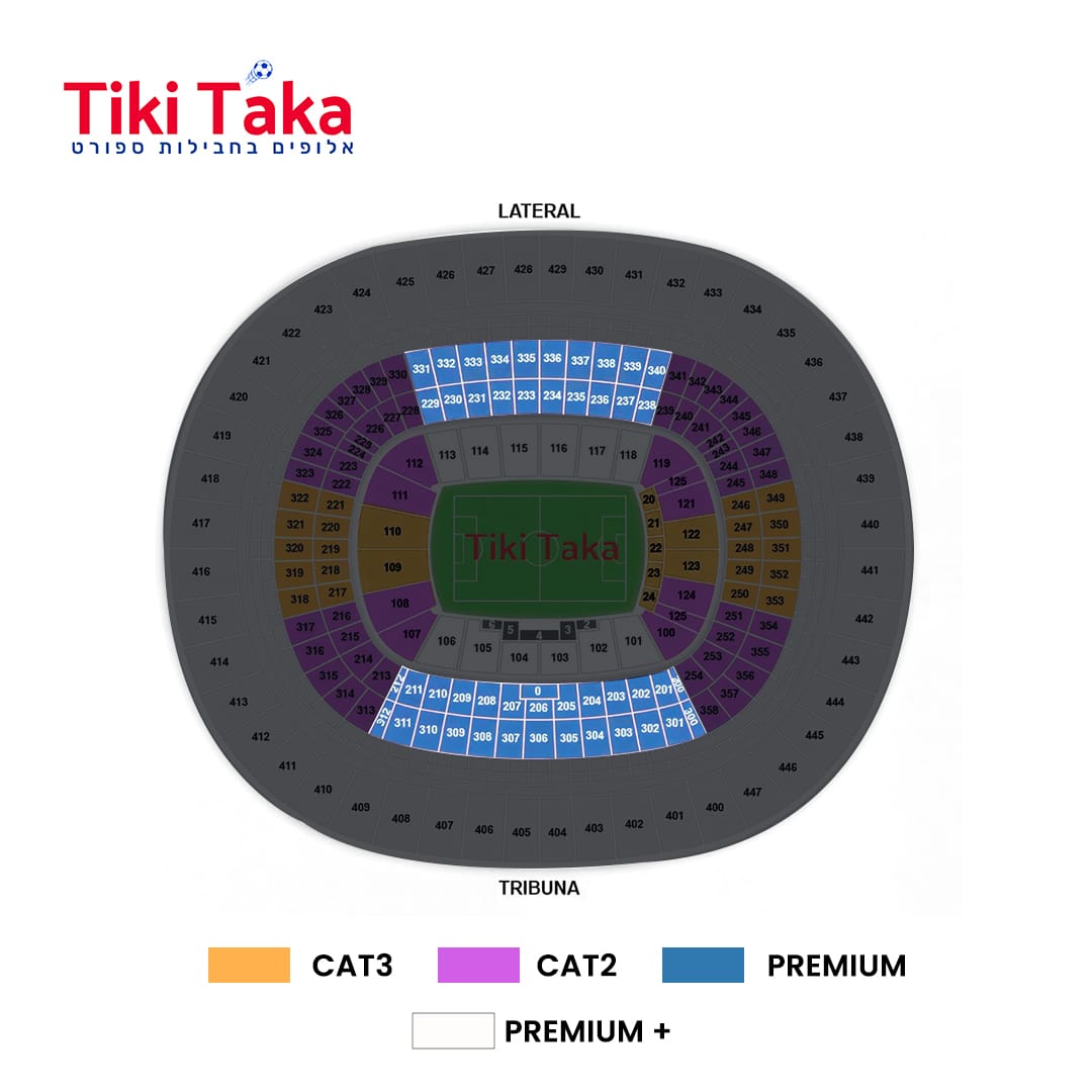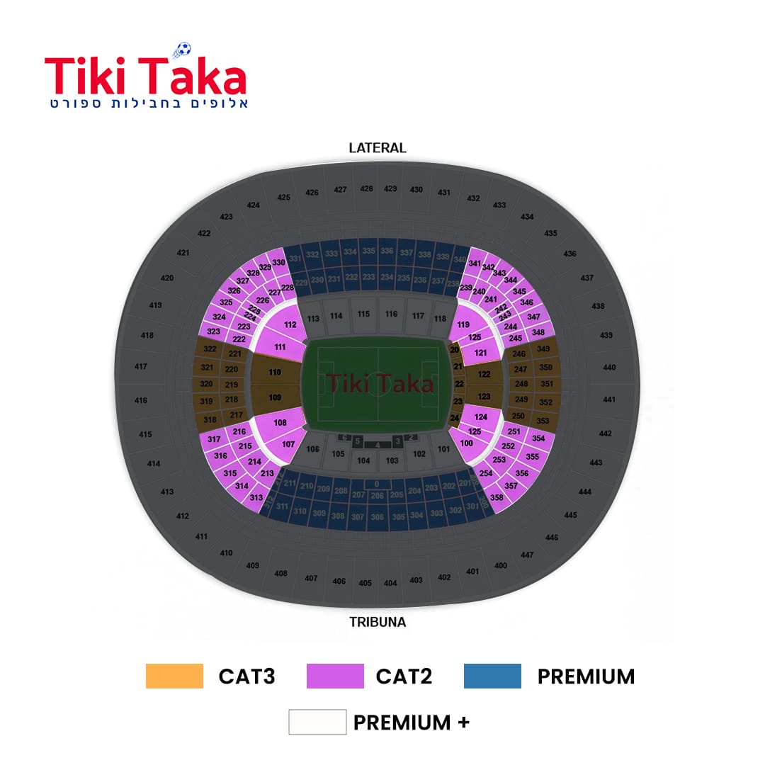 המחיר הוא מחיר הבסיס לכרטיס בקטגוריה הנמוכה ביותר. תוספת תשלום מופיעה בצבע אדום לצד הקטגוריה הנבחרת. התחייבות מצידנו לזוגות צמודים במגרש – ייתכן תוספת תשלום לדרישה של 3 מקומות צמודים או יותר.